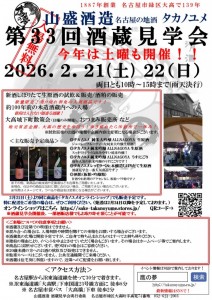 2026/2/21(土)2/22(日)の二日間、酒蔵見学会を開催します。